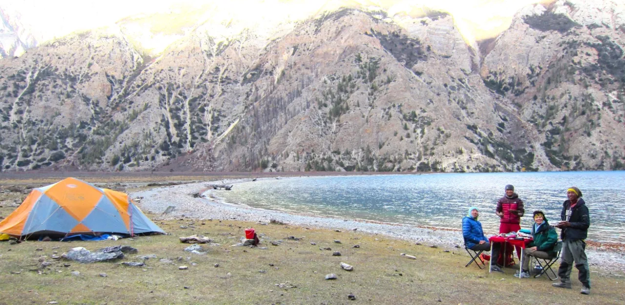 A team of guides, cooks, and porters ensures safety and comfort, managing logistics such as meals, camping setup, and navigation. - Trekkers should also know that due to the lack of teahouses, the trek is entirely camping-based, requiring a support crew and careful logistical planning throughout the journey.