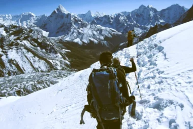 The category was created by the Nepal Mountaineering association as an intermediate stage between hiking and all-out mountaineering. They are often close to major peaks, with astounding views from their summits. Climbing them gives you the exhilaration of pitting yourself against Himalayan conditions and altitudes, so don’t underestimate the challenge. It is essential to note that these are still considerable mountains, taller than almost anything in North America or Europe. Don’t be fooled by the name ‘trekking peak’ – most require a little scrambling over snow and ice so make sure you are familiar with the use of crampons and ice axes.