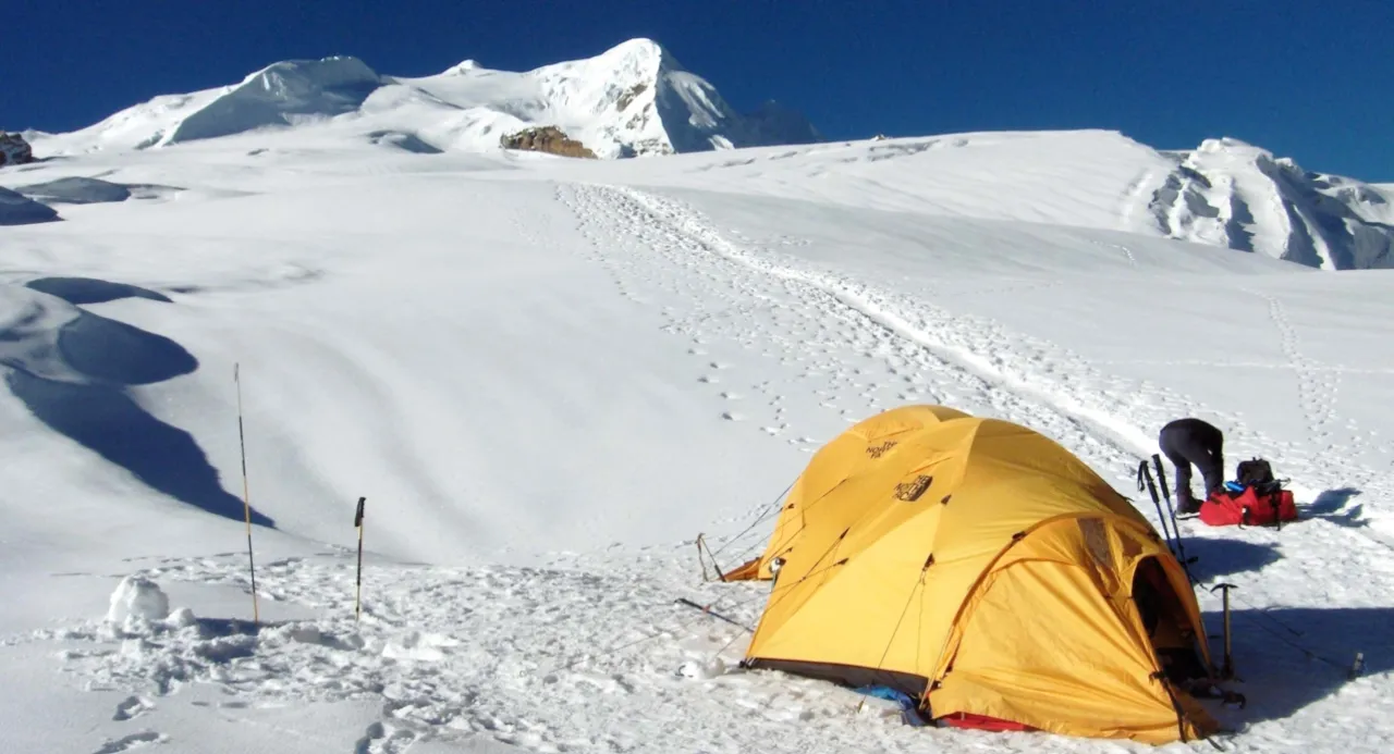 Climbing: A couple of nights at Khare for acclimatization and perfecting your fixed rope and abseiling skills for final push towards the Summit. Then start our climb by establishing our camp at Base Camp (5,300m) on the east side of Mera La on a gravel flat below the ice. Next day is to high camp (5,800m) which is around 4 hours walk on gently slanted snow slopes Then, if the weather permits, it’s a day to summit. Start early morning around 0200 hours with headlights on with continuing up the ridge then ascend steeply to the east of the left-hand ridge before moving to the right to make the summit easier. Our staff will fix safety ropes to the bottom of the last part of the summit climb. During this time, we take a bit of rest at the South Col observing the amazing sunrise over the Himalayas. Then ready for the final push taking the steepest part of the climb of the last section with the help of Jumar. Finally, on the top with a spectacular view of Mt. Everest (8,848m), the highest mountain in the world, Mt. Kanchenjunga (8,586m), the third highest, Mt. Makalu (8,463m) , the fifth highest mountain of the Universe and several other peaks.