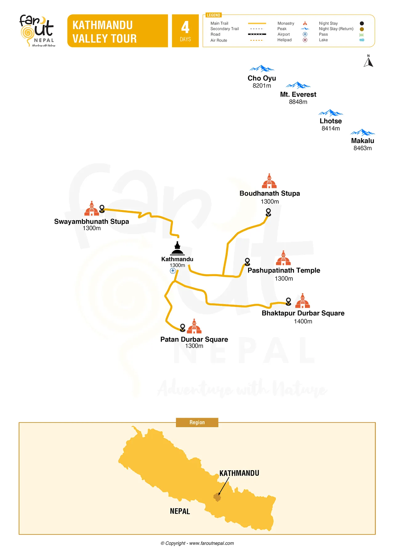 Anyone who has an interest in knowing the history, culture, spiritual touch and view of Himalayas of Nepal in a short span of time, 04 Days Kathmandu Valley tour will be an ideal one.