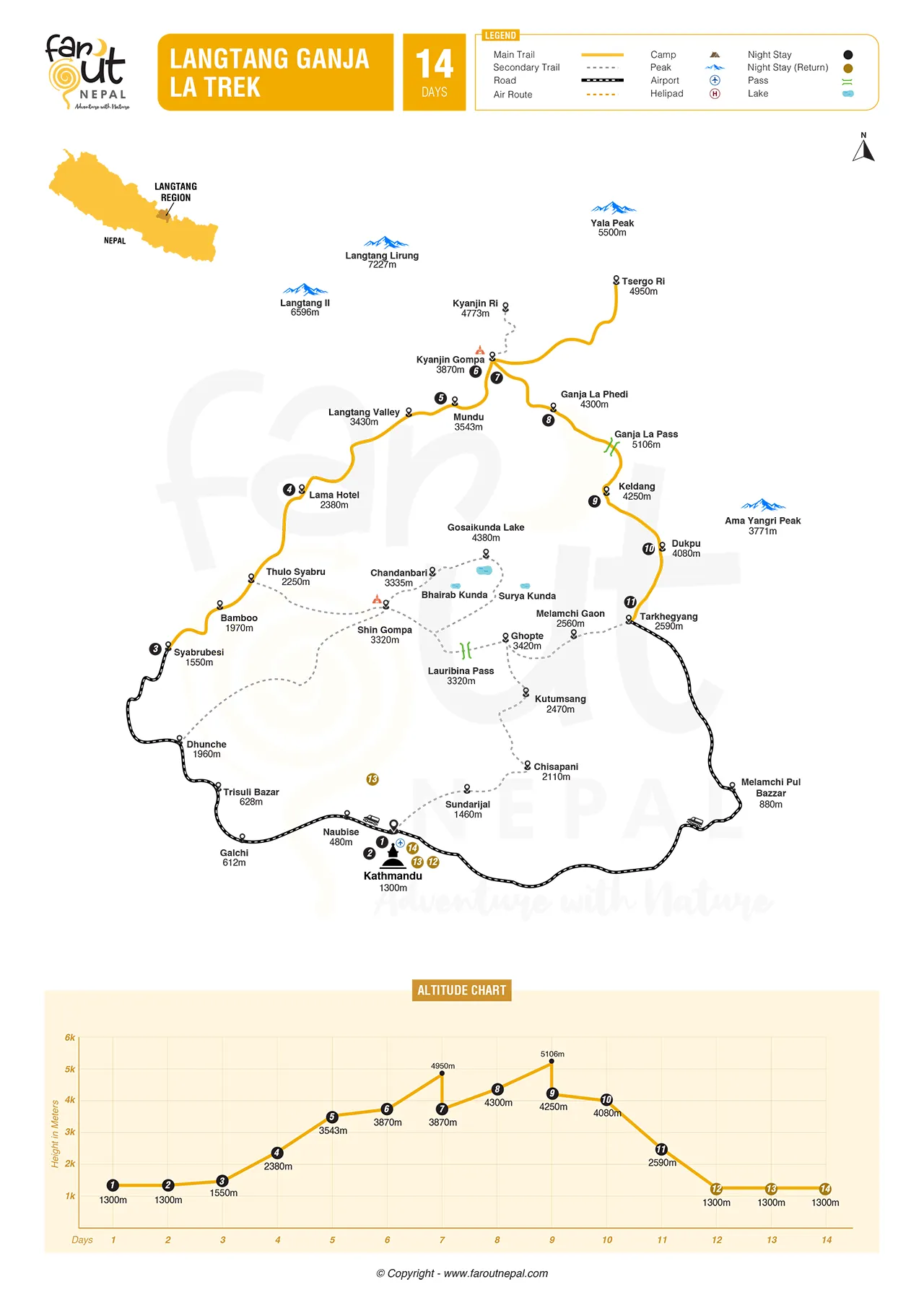 Although this trek is not that challenging as the Everest Base Camp but the part crossing the Ganja La (Pass) which goes up to an altitude of 5,122 m poses a risk of having altitude problem and bit of challenges. It is therefore essential to have a proper planning, preparation in order to have a safe and enjoyable trek.