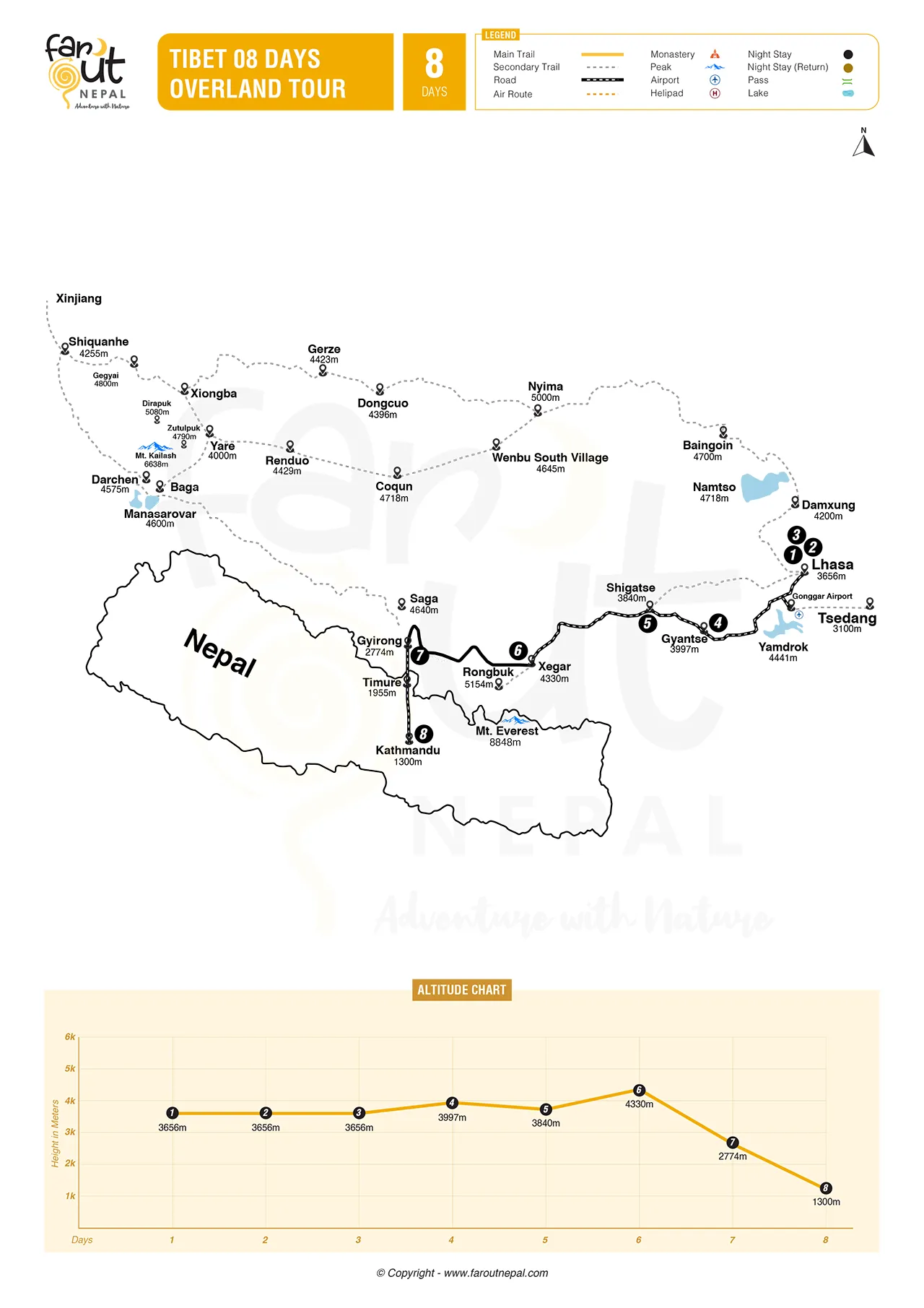 Tibet 08 Days Overland Tour: Routes