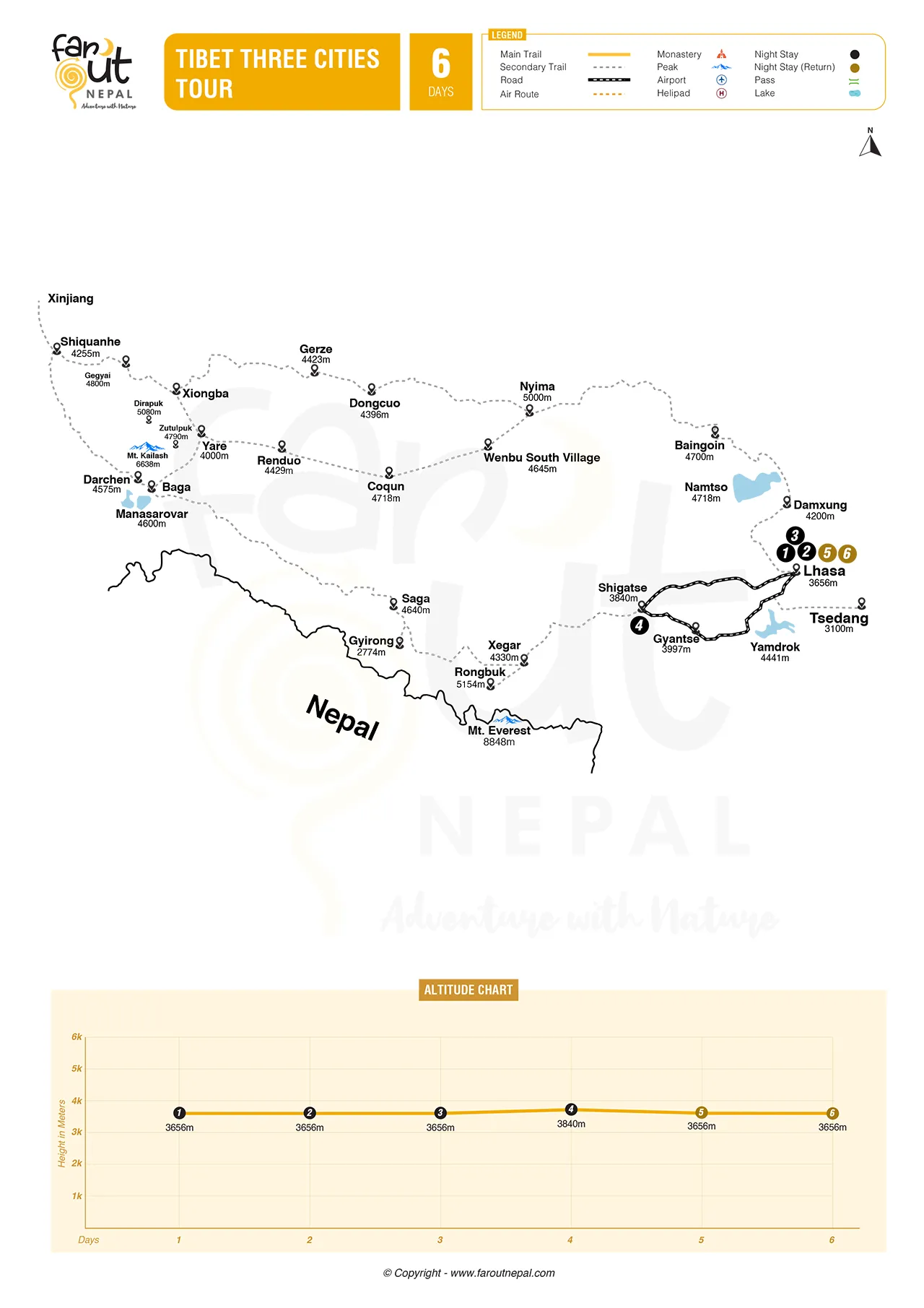 The Tibet 06 Days Three Cities Tour spans 5 nights and 6 days, beginning with a flight into Lhasa, the capital of Tibet, and continuing south towards the town second largest town of Tibet Xigatse and returning back to Lhasa for flight to Kathmandu.